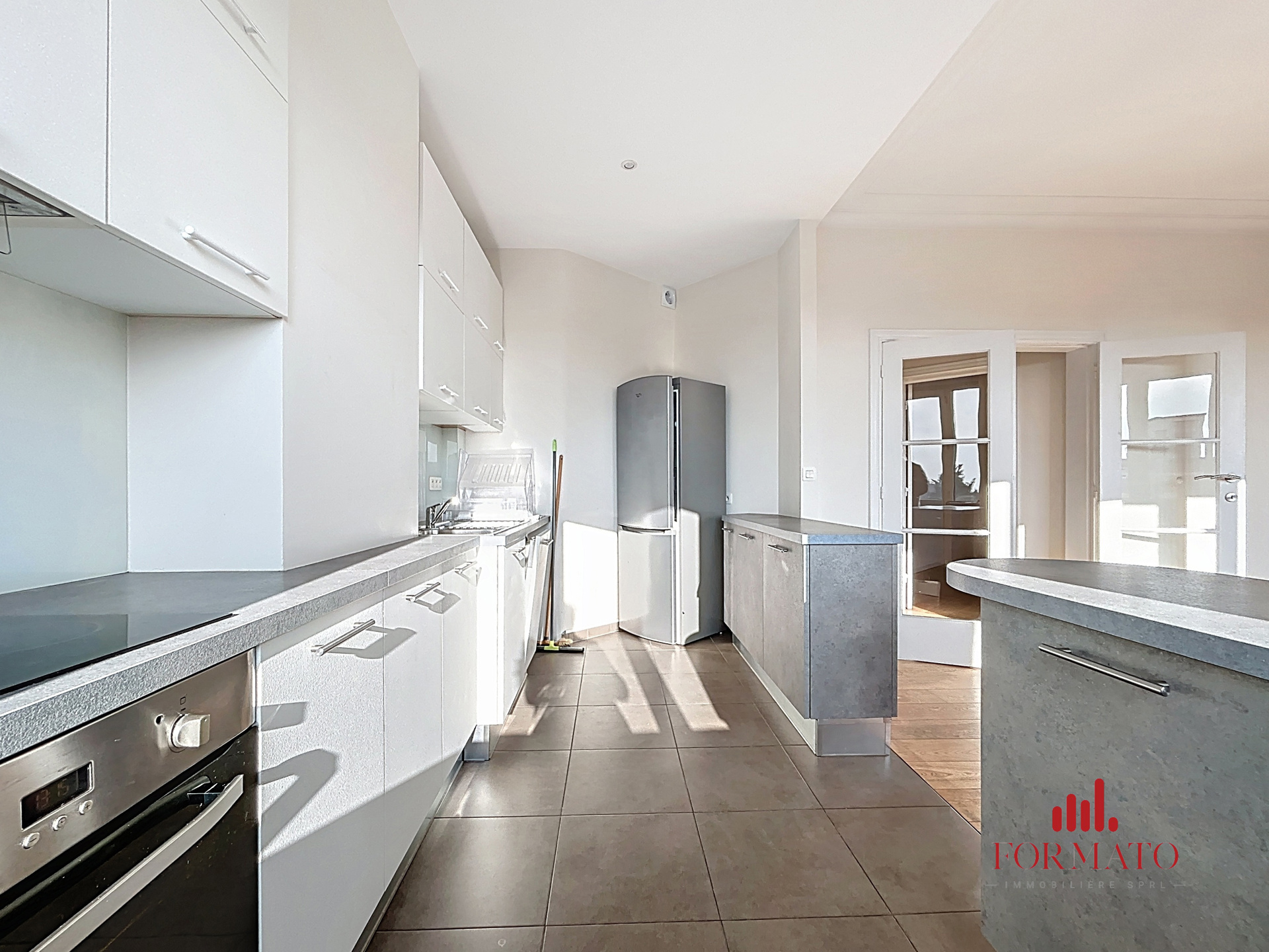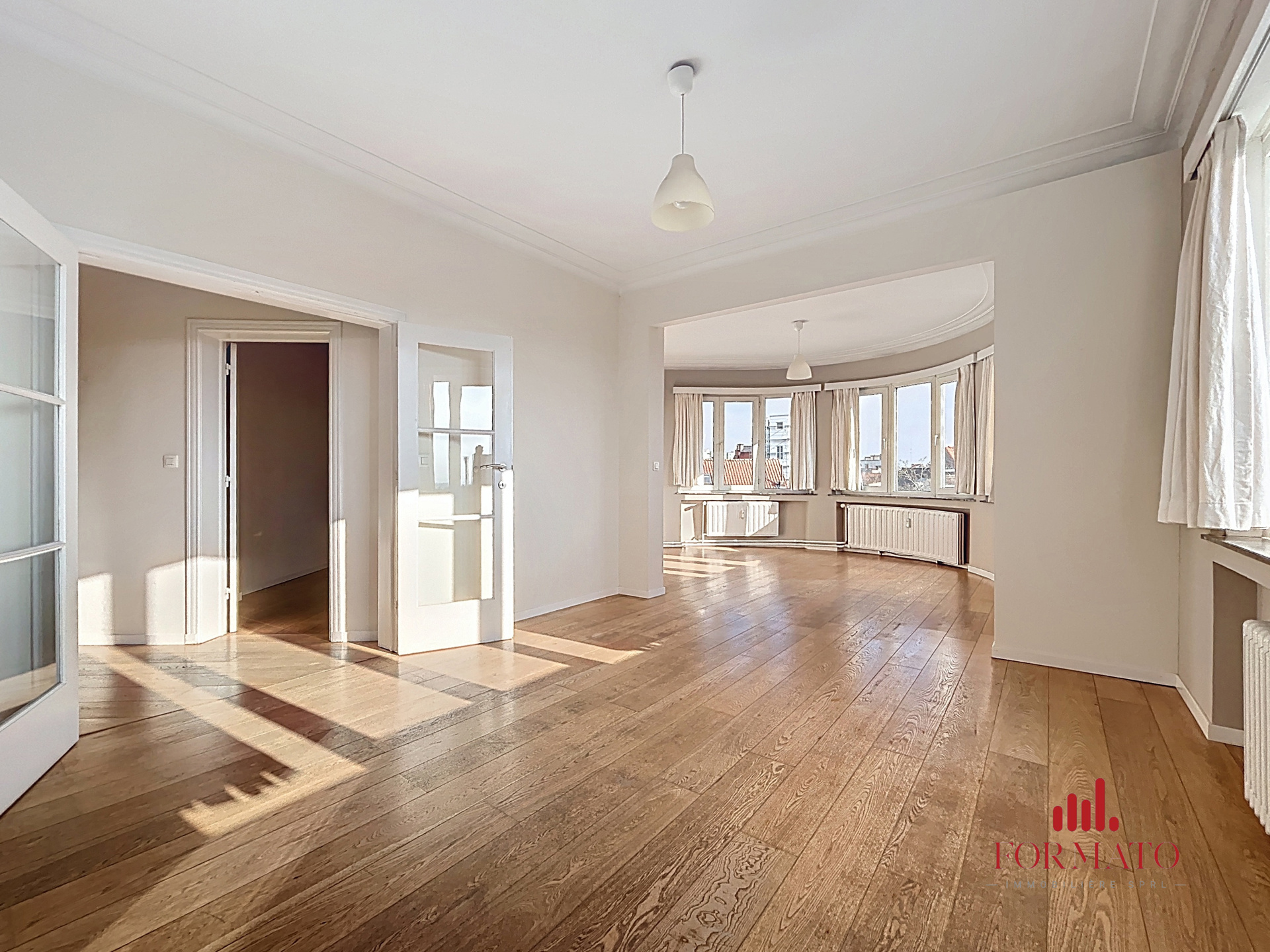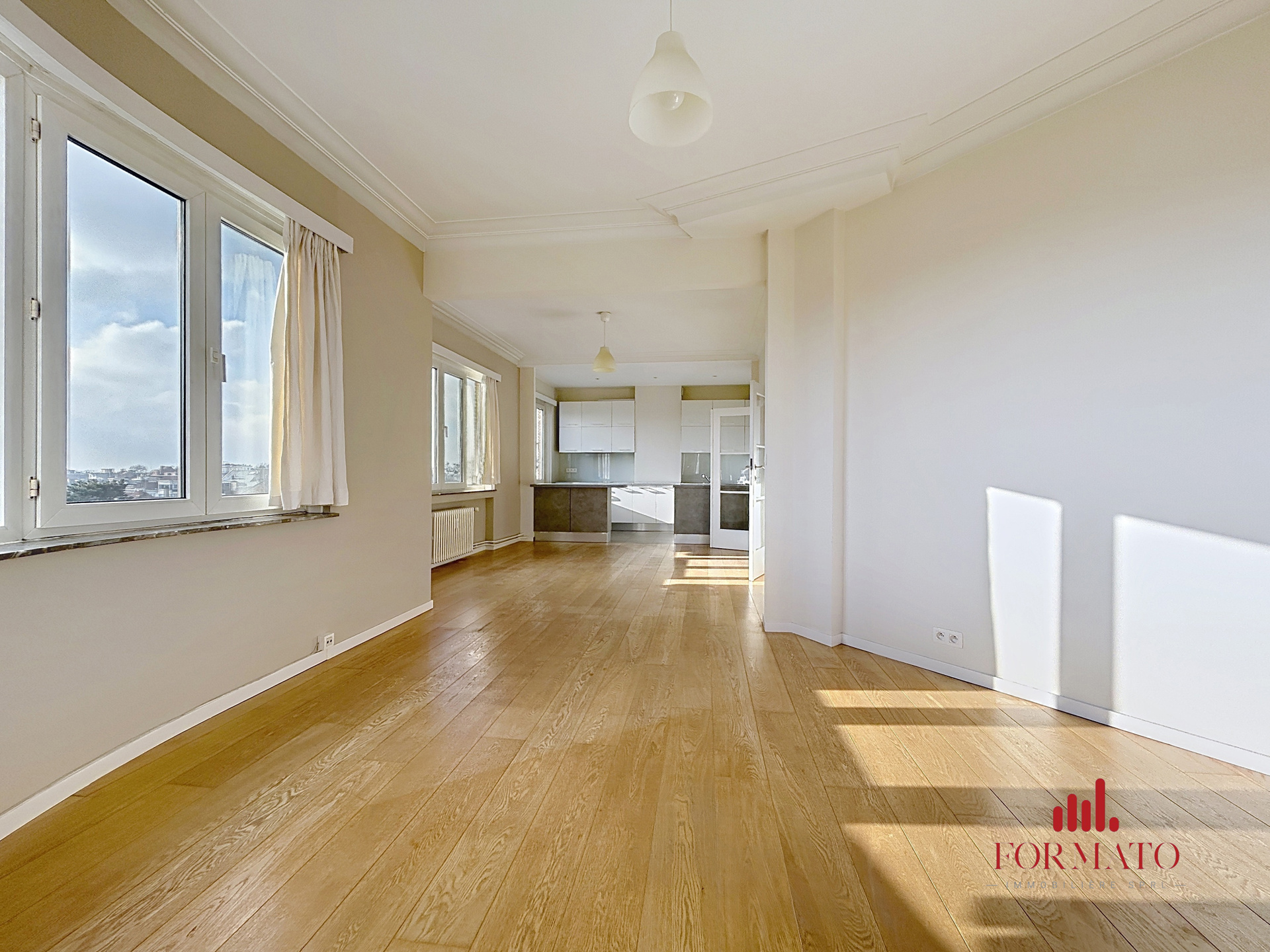 Immobilière FORMATO presents this stunning renovated apartment of ±95 m², located on the 4th floor of a well-maintained building with elevator, at Avenue Maréchal Joffre 132, just steps away from Avenue Coghen and Altitude Cent.