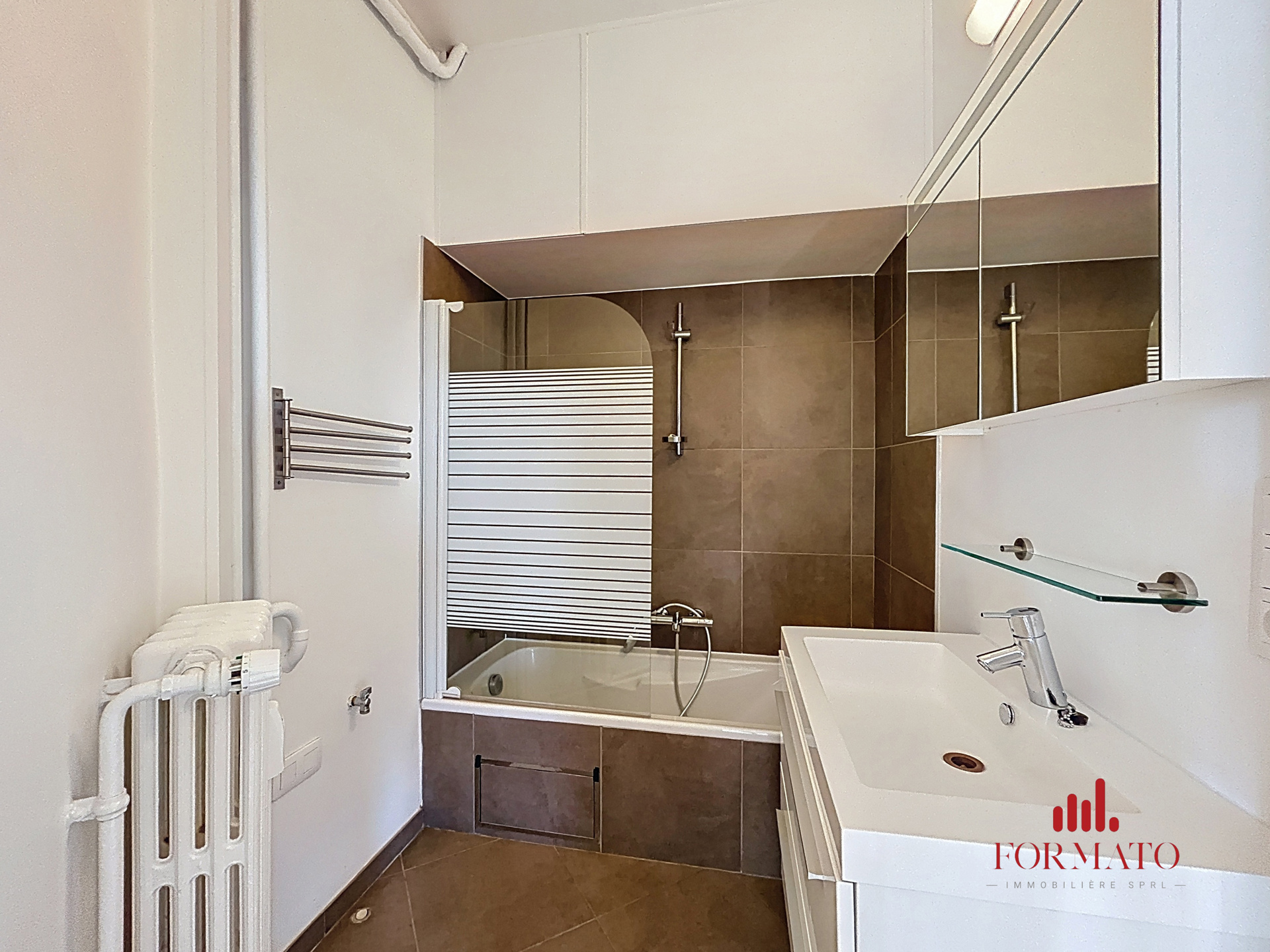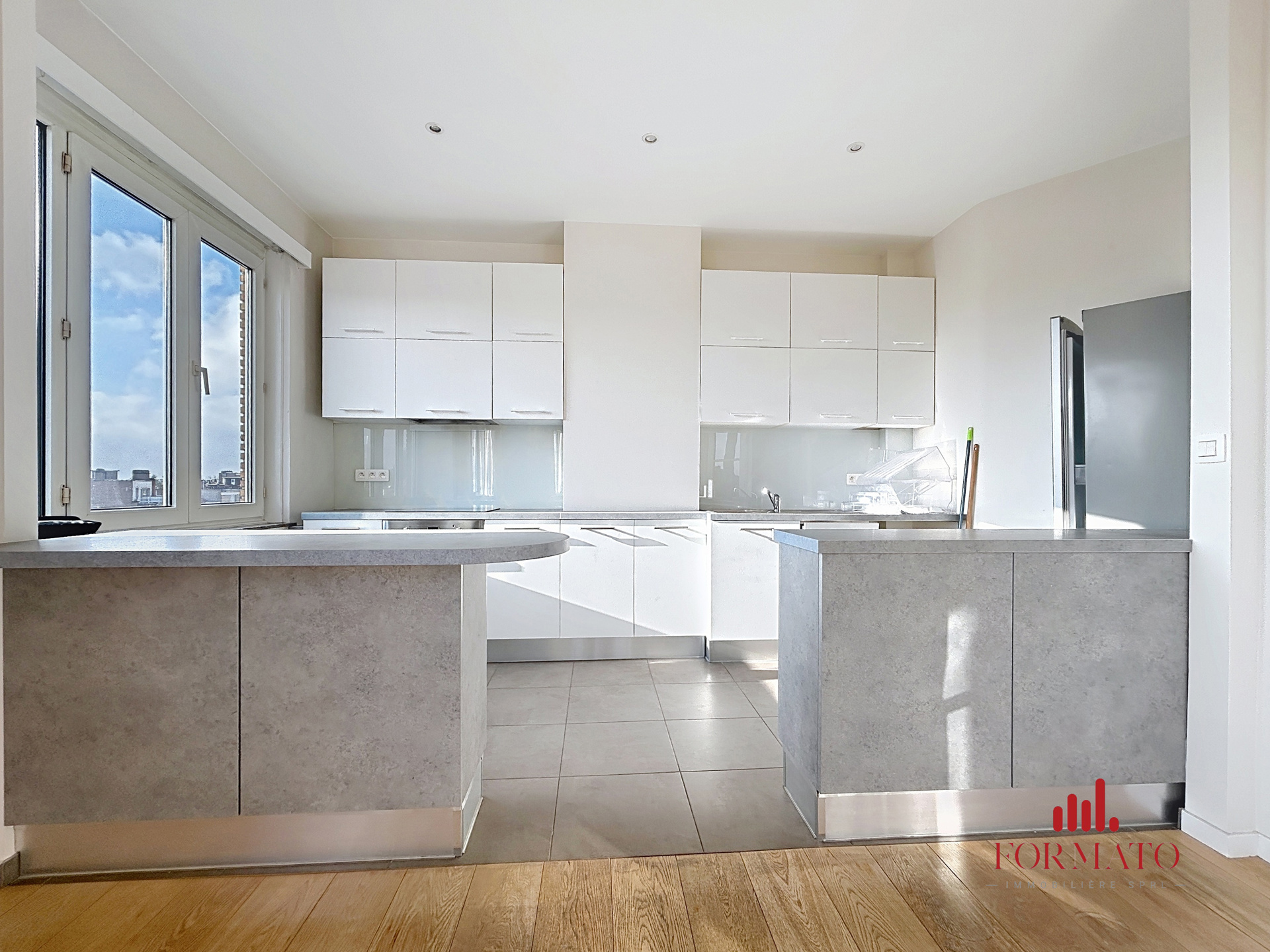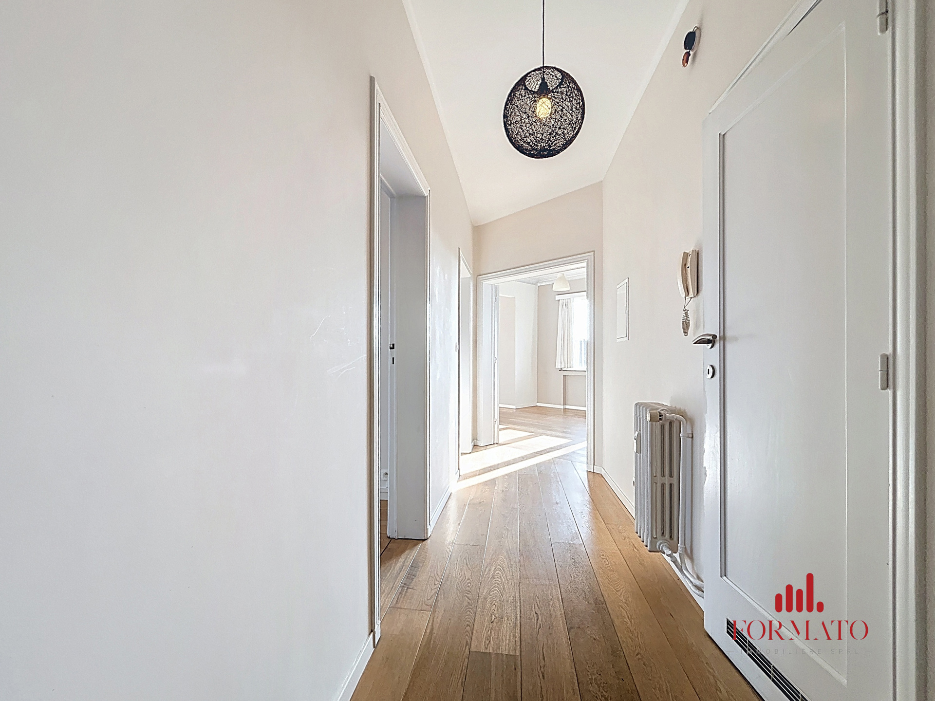Immobilière FORMATO presents this stunning renovated apartment of ±95 m², located on the 4th floor of a well-maintained building with elevator, at Avenue Maréchal Joffre 132, just steps away from Avenue Coghen and Altitude Cent.